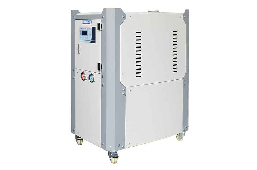 1、風(fēng)冷式吹塑冷水機(jī),通過風(fēng)扇以空氣為冷凝方式的控溫設(shè)備,有箱式和螺桿式;